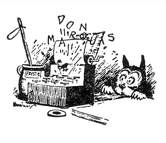 Marquis' George Herriman's ink drawings are sublime. See, here is archy putting in the immense athletic effort needed to type a short column: