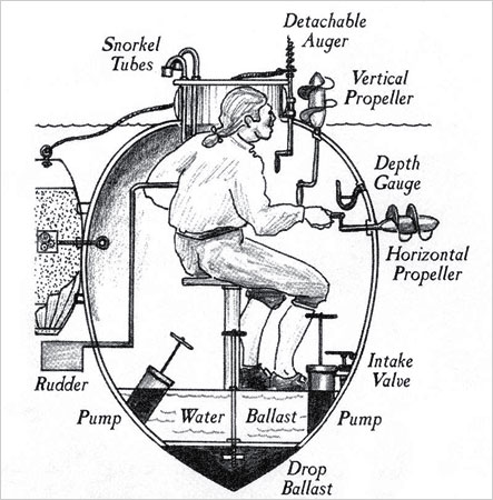 The Turtle was a true submarine with all the attendant systems, including snorkels, trim and ballast control.